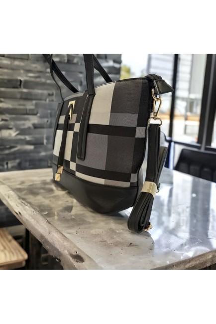 Sac à main inspi à carreau noir tendance